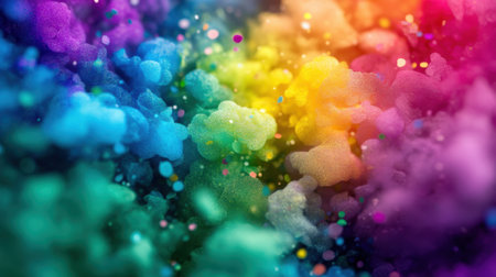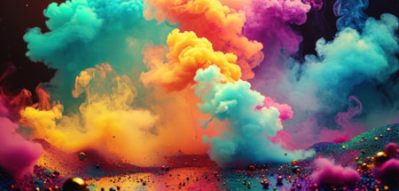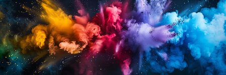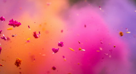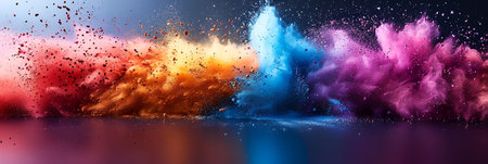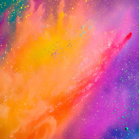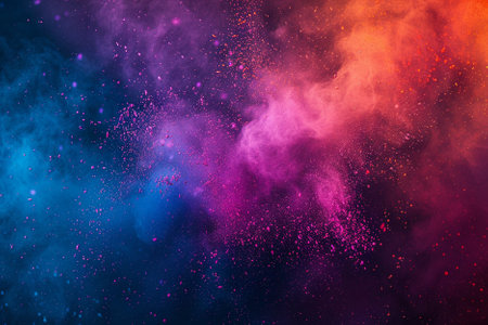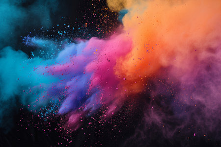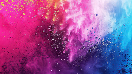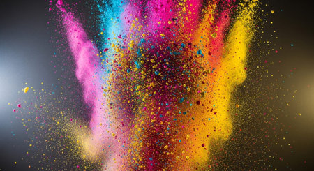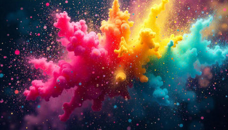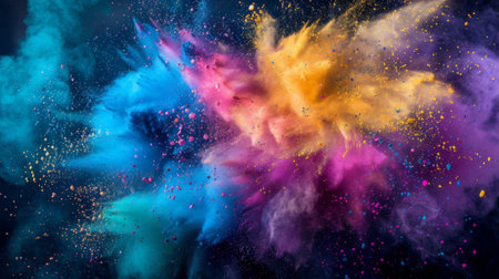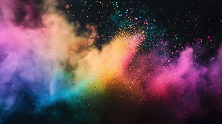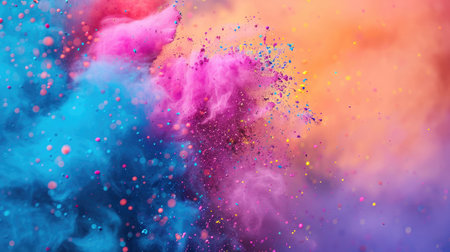 This captivating image showcases a vibrant explosion of colorful powder and confetti, creating a dynamic and joyful atmosphere perfect for festive events.