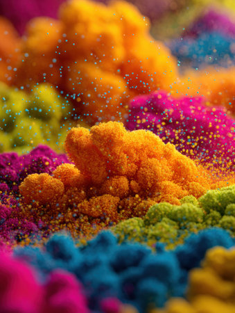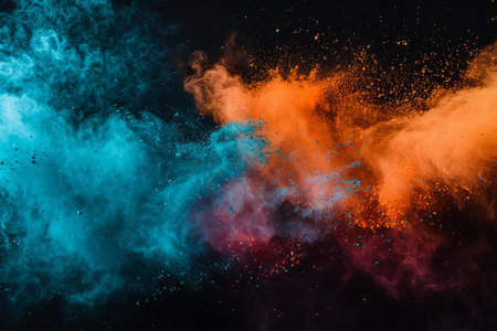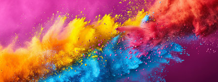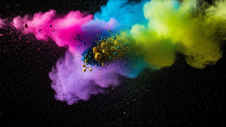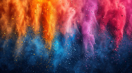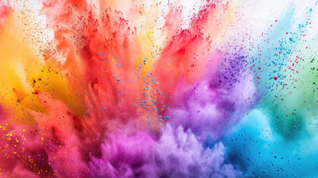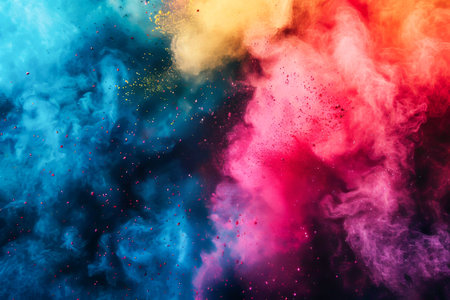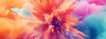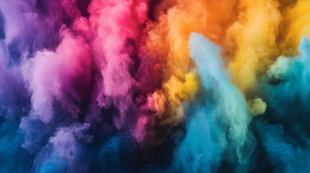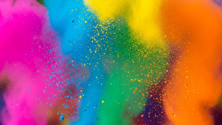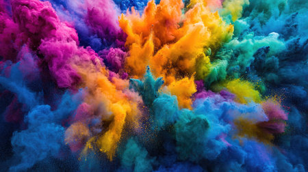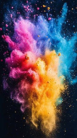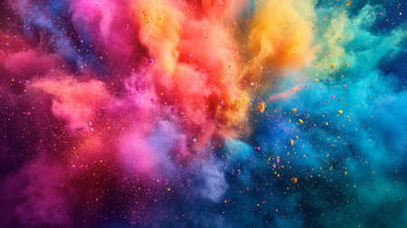 A stunning explosion of vibrant colored powder creates an abstract and dynamic backdrop, perfect for projects needing a bright and energetic touch.