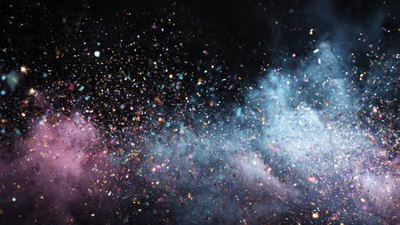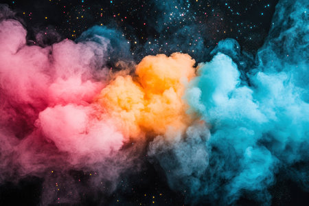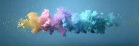 A stunning display of colorful dust particles creates a vibrant explosion in shades of blue, pink, and yellow, enhancing any creative project.