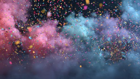 A vibrant display of colors and confetti bursts into the air during a lively celebration creating a joyful atmosphere.