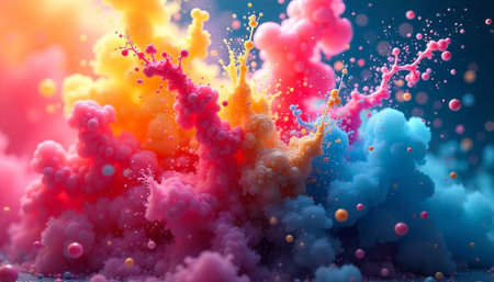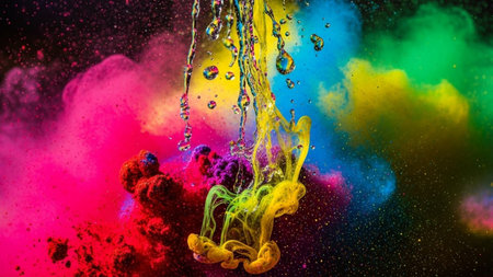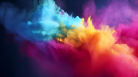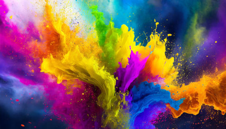A stunning explosion of vibrant colors creates an artistic visual impact against a dark background, perfect for conveying energy and creativity.