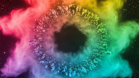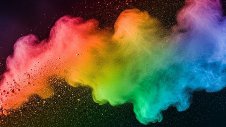 Bright rainbow powder explosion against a dark background image