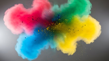 Vibrant Colored Powder Explosion on Solid Background - Ai Generated