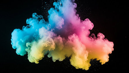 A stunning explosion of vibrant colors in an abstract cloud formation. This dynamic image captures the essence of creativity and artistry, perfect for various design projects.
