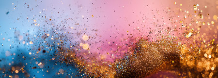 Shimmering golden glitter and abstract bokeh lights on pastel background.