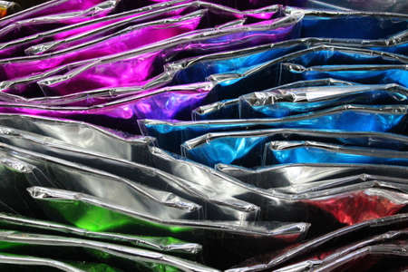 Abstract background of colored shiny foil close-up macro photo with shallow depth of field