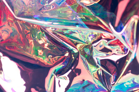 Colorful holographic surface with shimmering iridescent patterns and reflections