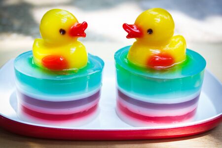 Colorful jelly, This dessert made by juice and gelatin.