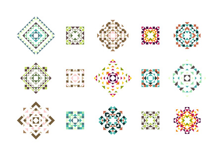 Beautiful Set of Geometric Ethnic Patterns. Vector Mexican and Aztec Decor Elements. Trendy Isolated Backgrounds, Icons and Logotypes.