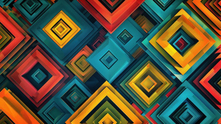 Abstract geometric seamless pattern with intricate squares and vivid hues, bold and stylish.