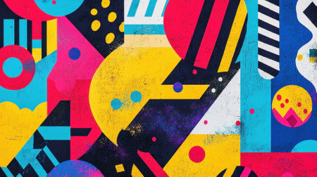 Vibrant abstract mural featuring bright colors and geometric shapes that create an energetic and modern atmosphere, ideal for creative projects and interior design
