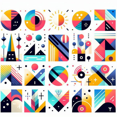 A vibrant composition of geometric shapes and colors
