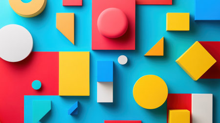 A vibrant arrangement of assorted geometric shapes showcases a playful exploration of color and design for creative backgrounds and visual projects.