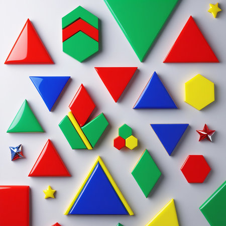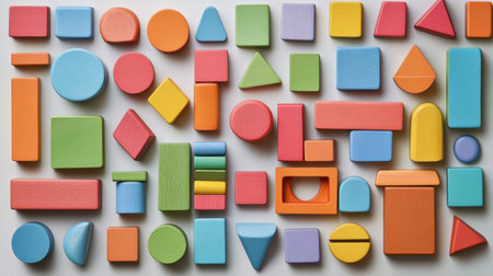 A vibrant display of geometric shapes and blocks designed for children
