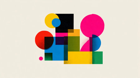 Colorful abstract geometric shapes create dynamic visual interest, blending bright circles and squares on a neutral background, ideal for modern art enthusiasts or design projects