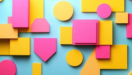 Explore a vibrant arrangement of geometric shapes in various colors on a minimalistic background. Ideal for creative design projects or art inspirations.