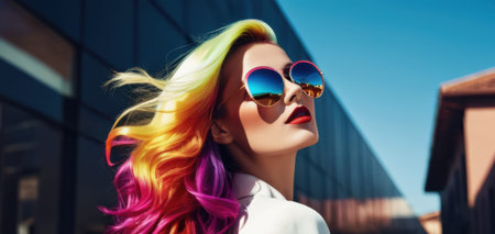 stylish woman with colorful hair and sunglasses outdoors concept of fashion beauty lifestyle