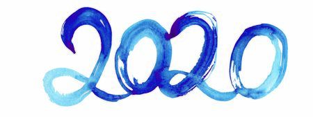 New Year 's date 2020. Number on white background. Watercolor numbers, painted image. New Year 's two thousand twentieth