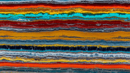 A vibrant geological cross-section displaying distinct horizontal stripes of colorful minerals in a layered pattern.
