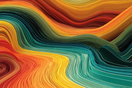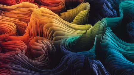 Abstract colorful waves of textured layers creating a vibrant visual experience.