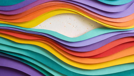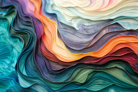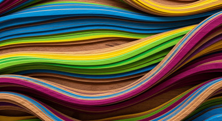 Discover the vibrant beauty of colorful paper layers in this abstract image. The wavy textures and rich hues create a stunning visual experience.