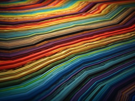 Explore a mesmerizing abstract composition featuring vibrant waves of paper strips in a rich palette, showcasing stunning colors and textures, perfect for creative projects.
