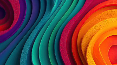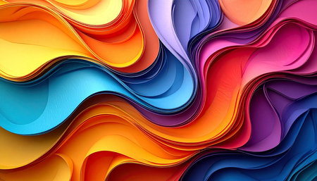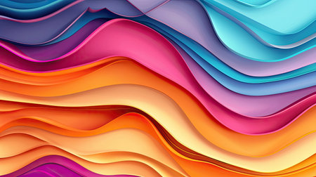 This colorful wavy background in a vibrant paper cut style showcases a stunning layered design. Its dynamic mix of bright hues and smooth curves offers an artistic, modern look perfect for