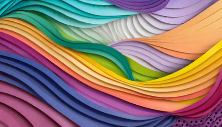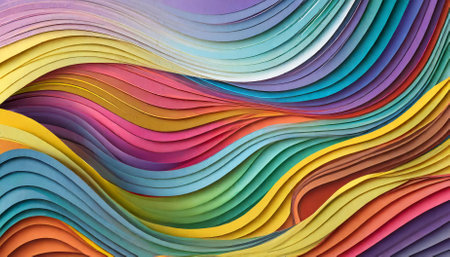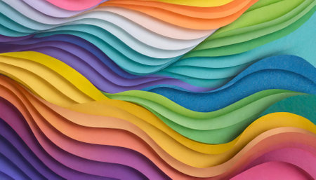 A stunning colorful wavy background designed in a modern paper cut style, showcasing gradient waves and intricately layers that add depth and vibrancy, ideal for web design, branding, or