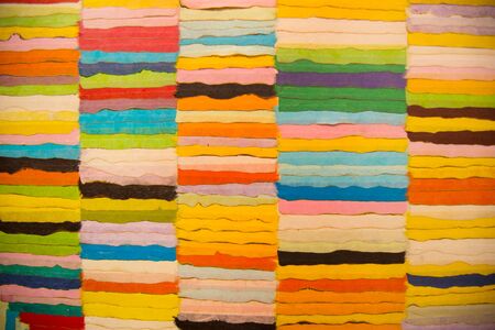 Colorful paper background, close-up view of multicolored paper blocks