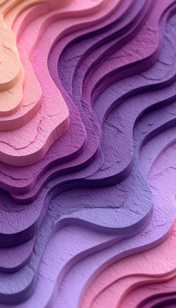 Abstract Waves Vibrant 3D Layered Paper Render in Rich Purple and Violet Tones, Contemporary Design