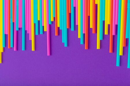 Colorful straws for beverage soft drink on colored background. creative photo.