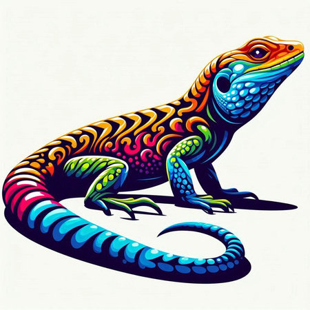 Lizard with colorful pattern on the body. Vector illustration of a lizard.