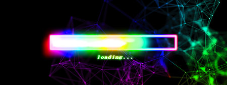 Loading, a progress bar showing loading, drawn against a bright colored background.
