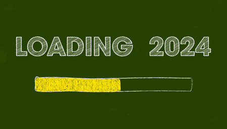 Illustration of a green board with the message loading 2024 - represents the new year - vacation concept.