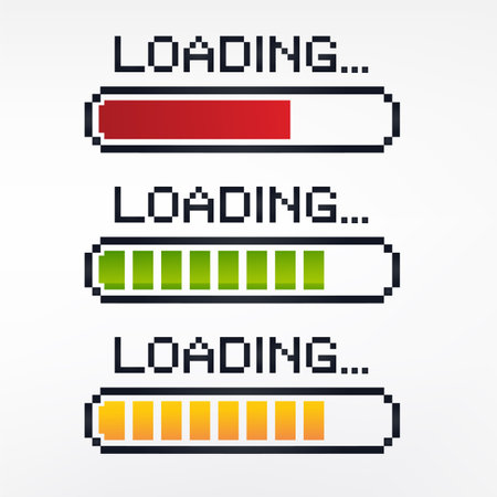 Loading progress bar. Set of colorful pixel icons. Vector illustration.