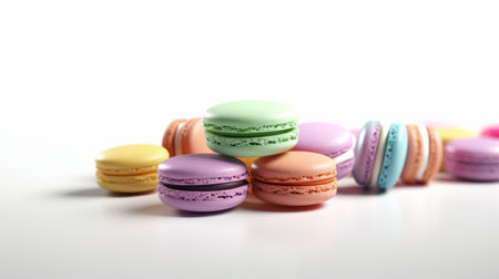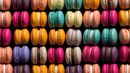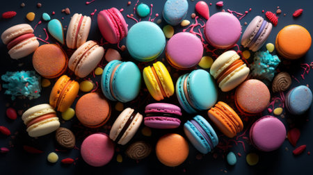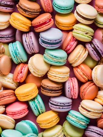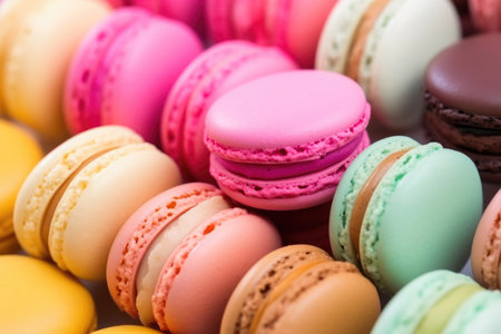 A colorful arrangement of French macaroons, a sweet indulgence generated by artificial intelligence