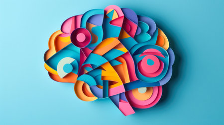 Colorful Origami Brain on Blue Background