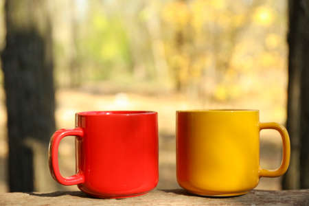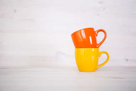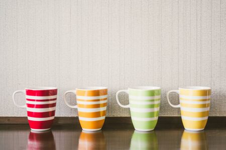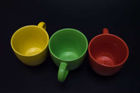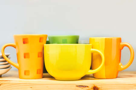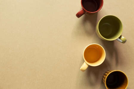 Empty colorful cups for tea and coffee