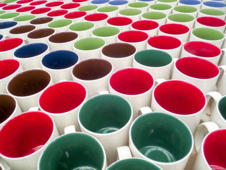 colorful of ceramic cup background in warehouse