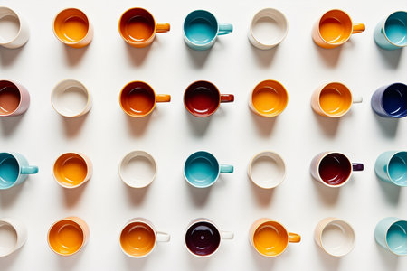 Overhead view of coffee mugs. Generative AI