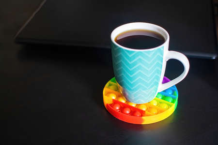 Bright rainbow toy antistress for children and adults as a hot stand. Flexible sensory antistress toy - pop it.