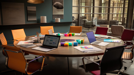 Vibrant and Modern Workspace Designed for Collaboration and Creativity in an Office Environment During Daytime. Generative AI