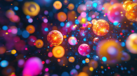 Luminous orbs create a vibrant overlay texture in dynamic color patterns