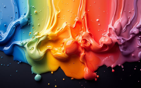 Artistic rainbow flow with paint drops and chaotic color splatter, vivid modern wallpaper