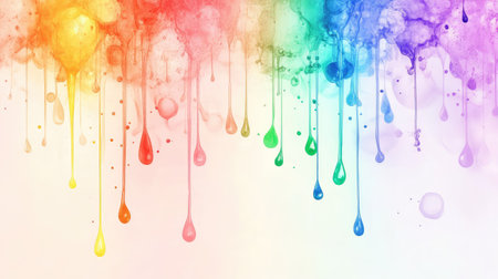 Colorful watercolor paint drops create a fresh and artistic drippy effect on a pure white background