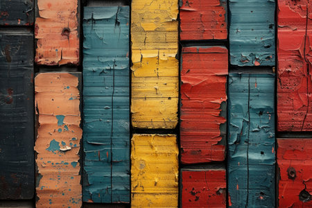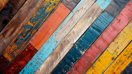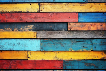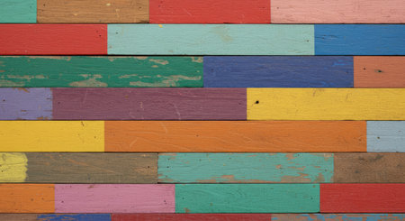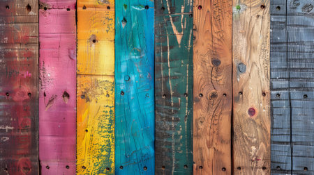 Colorful wooden planks with a weathered look, perfect for backgrounds and rustic designs, adding charm and character.