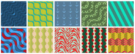 colorful fabric pattern design set for textile print necktie, paper, fabric, handkerchief, scarf, gift wrap vector illustration seamless