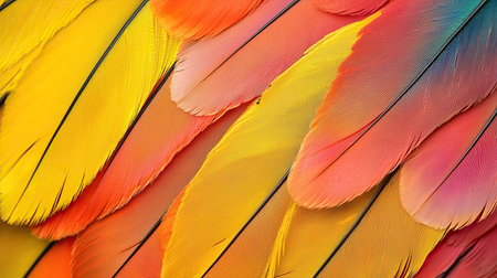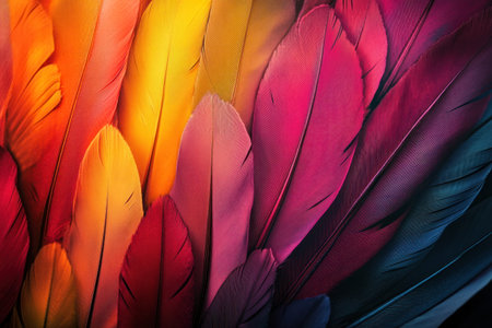 Brightly colored bird feathers close up showcasing vibrant patterns and hues