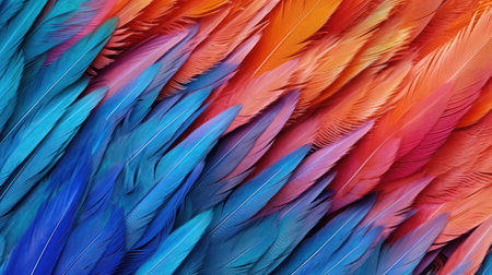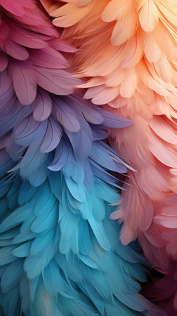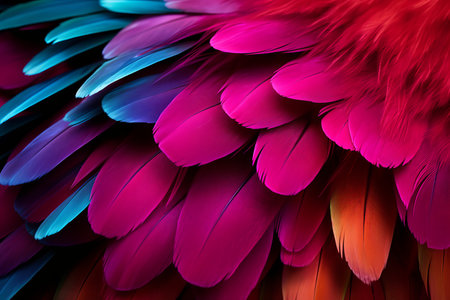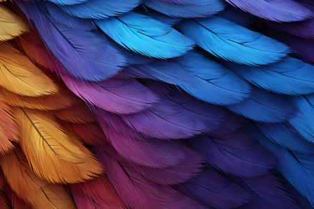 Capture the essence of nature's beauty with this vivid close-up of multicolor feather patterns showcasing intricate textures and bright hues.