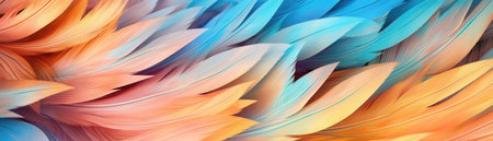 Very Detailed Feathers Pastel Orange Green Blue Tones Panoramic Banner